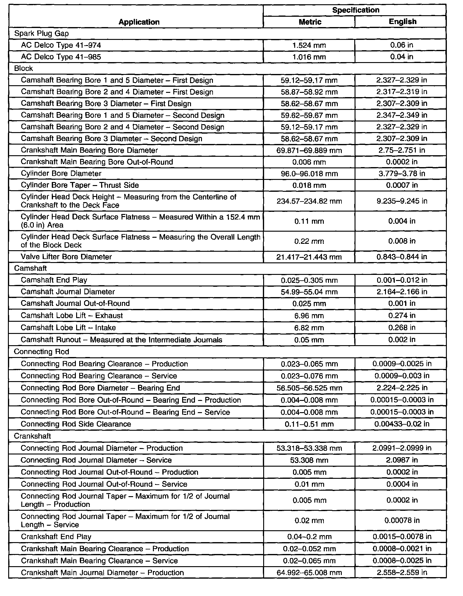 Engine Specifications (LM7 VIN T)