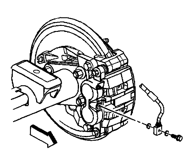 9. Connect the brake hose at the caliper by installing the brake hose to caliper bolt.