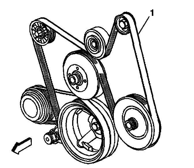 6. Remove the belt (1) from the pulleys and the drive belt tensioner.