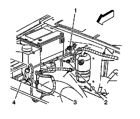 3. Push down on the black clip in order to disconnect the MAF/IAT sensor electrical connector (4).