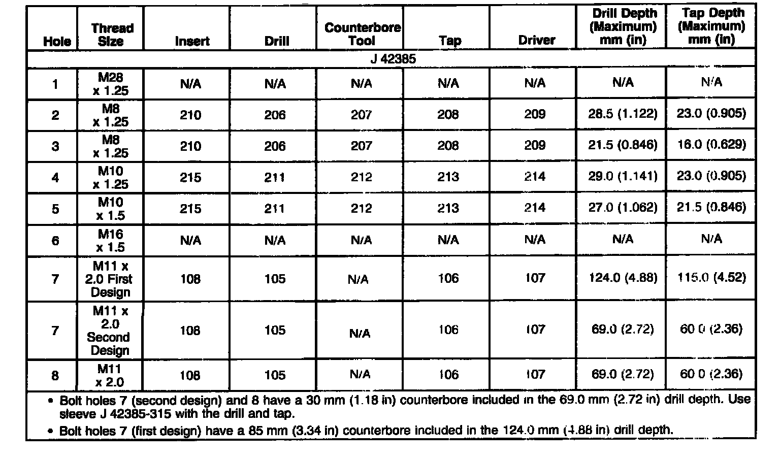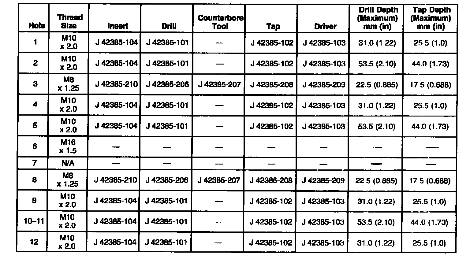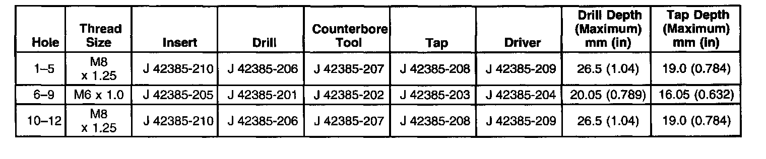 Thread Repair SpecificationsEngine Block - Front View