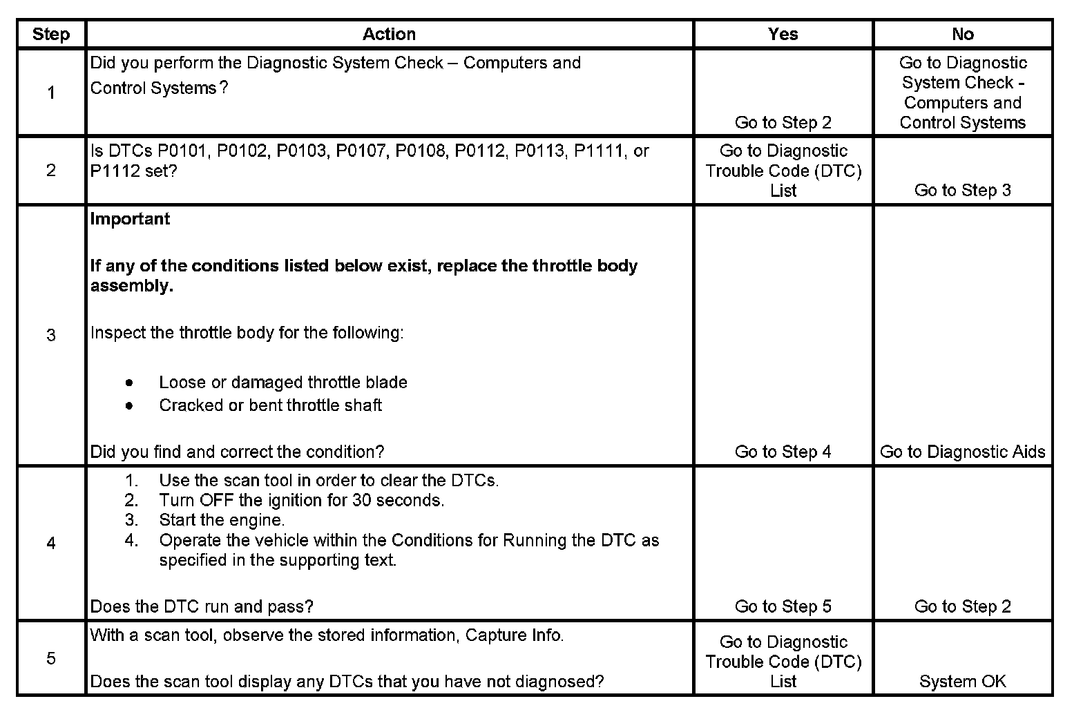 - Physically and visually inspect the throttle body assembly and correct any problems that you observe. Manually move the throttle blade from closed to wide open throttle (WOT). You should not need to use excess force. The throttle blade should move smoothly through the full range and then should independently return to a slightly open position.