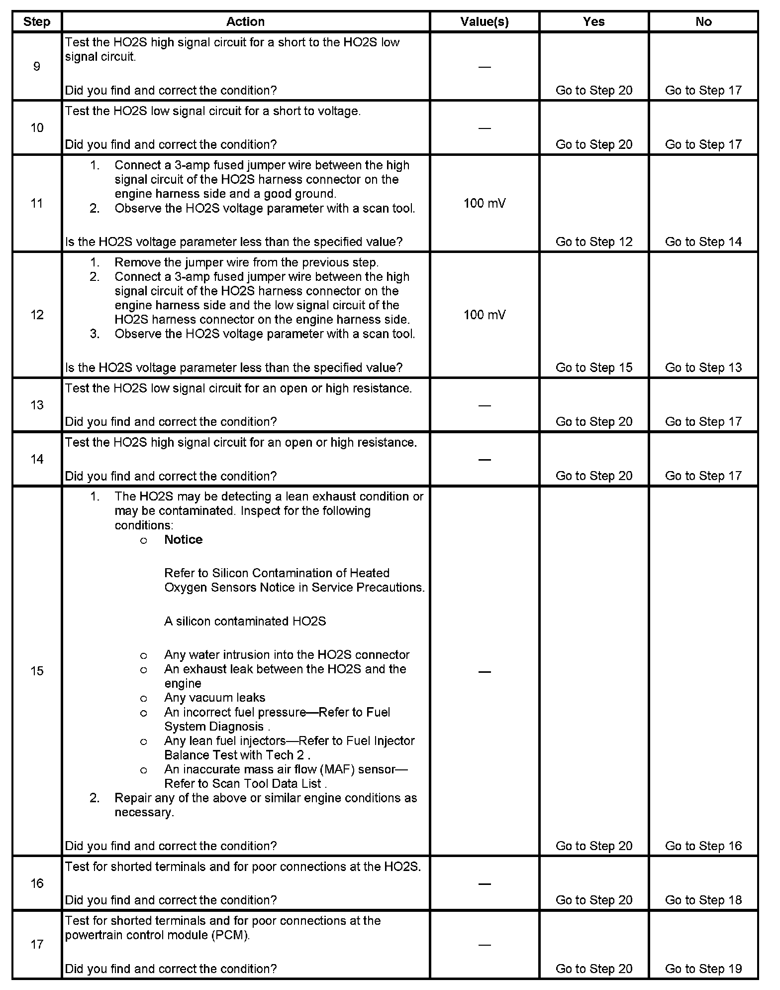 2. If the voltage does not change more that the specified value, the condition is present.