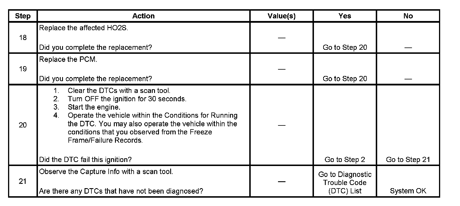 - A current DTC, Last Test Failed, clears when the diagnostic runs and passes.
