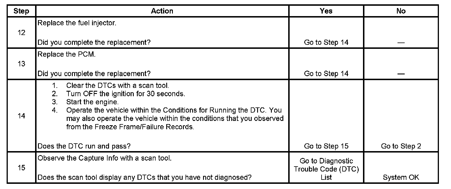 - The PCM detects an incorrect voltage on a fuel injector control circuit.