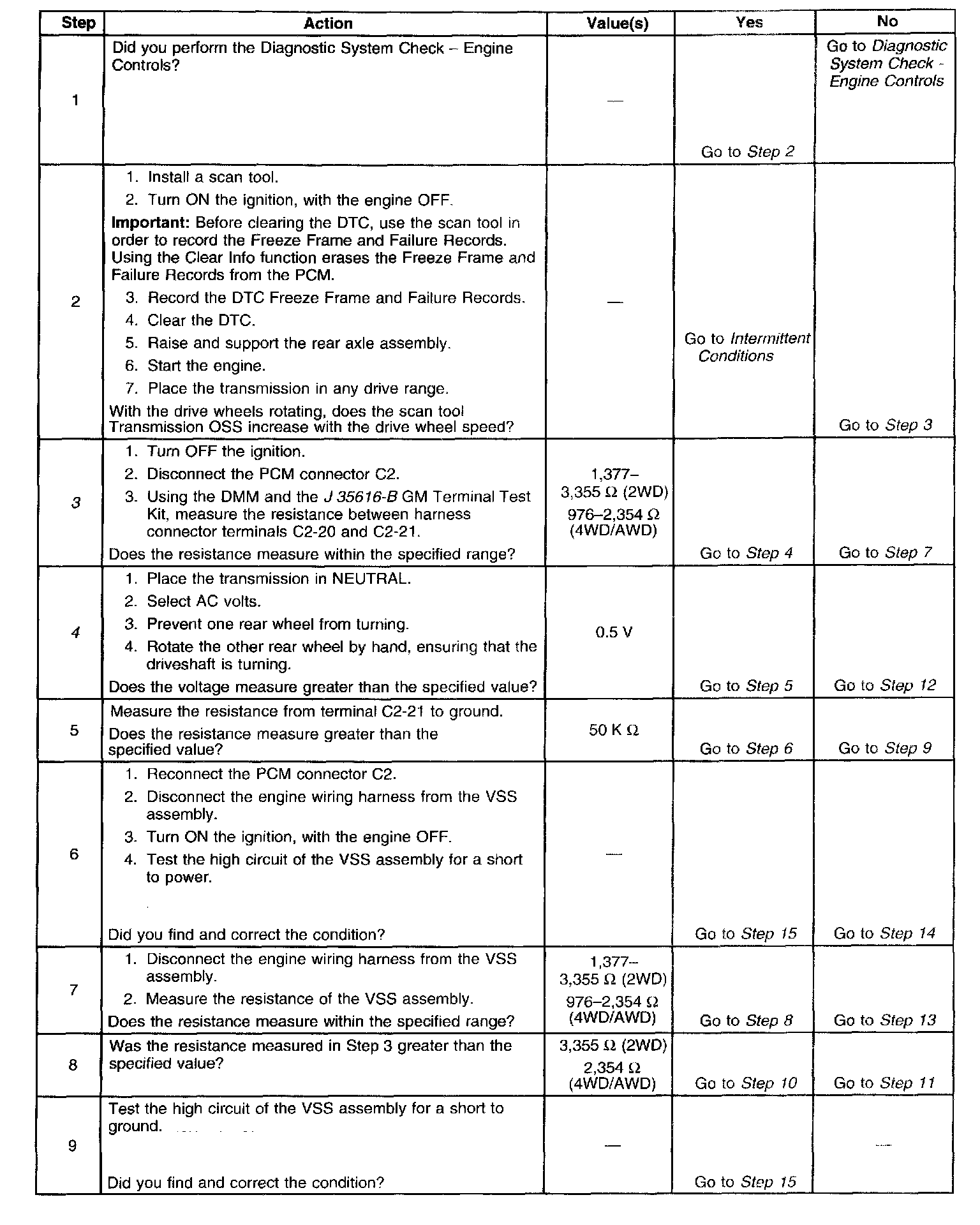 When the PCM detects a low vehicle speed when there is a high engine speed in a drive gear range, then DTC P0502 sets. DTC P0502 is a type B DTC.