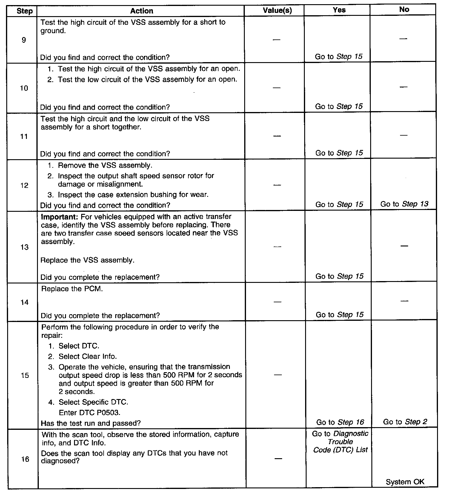 ^ The PCM stores DTC P0503 in PCM history during the second consecutive trip in which the Conditions for Setting the DTC are met.