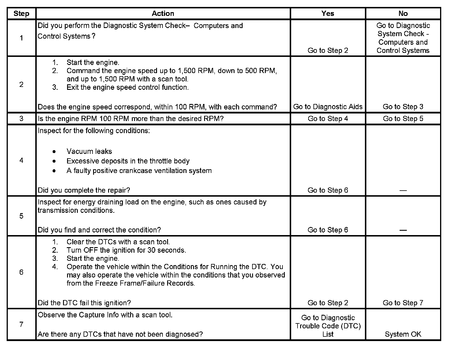 2. This test determines whether the engine can achieve the commanded RPM. If the engine does not reach the commanded RPM, the test determines whether the RPM is too high or too low.