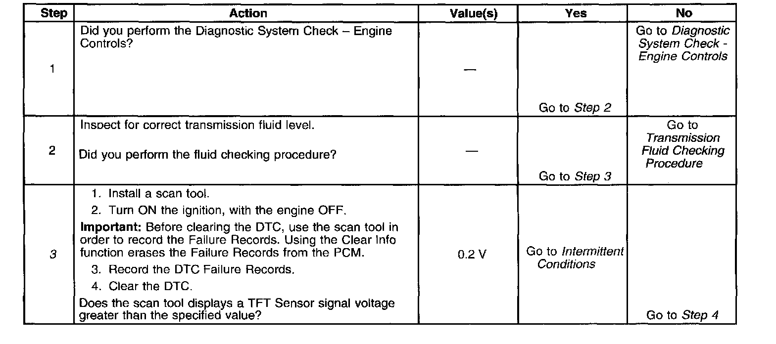 1. If any ECT DTCs P0117 or P0118 are set, then the default TFT is equal to 135°C (275°F).