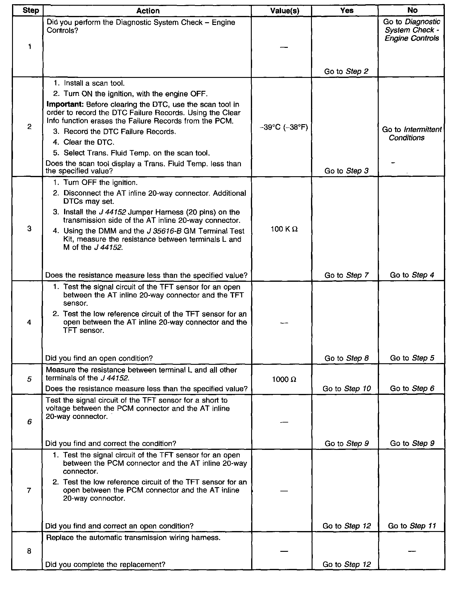 1. If any ECT DTCs P0117 or P0118 are set, then the default TFT is equal to 135°C(275°F).