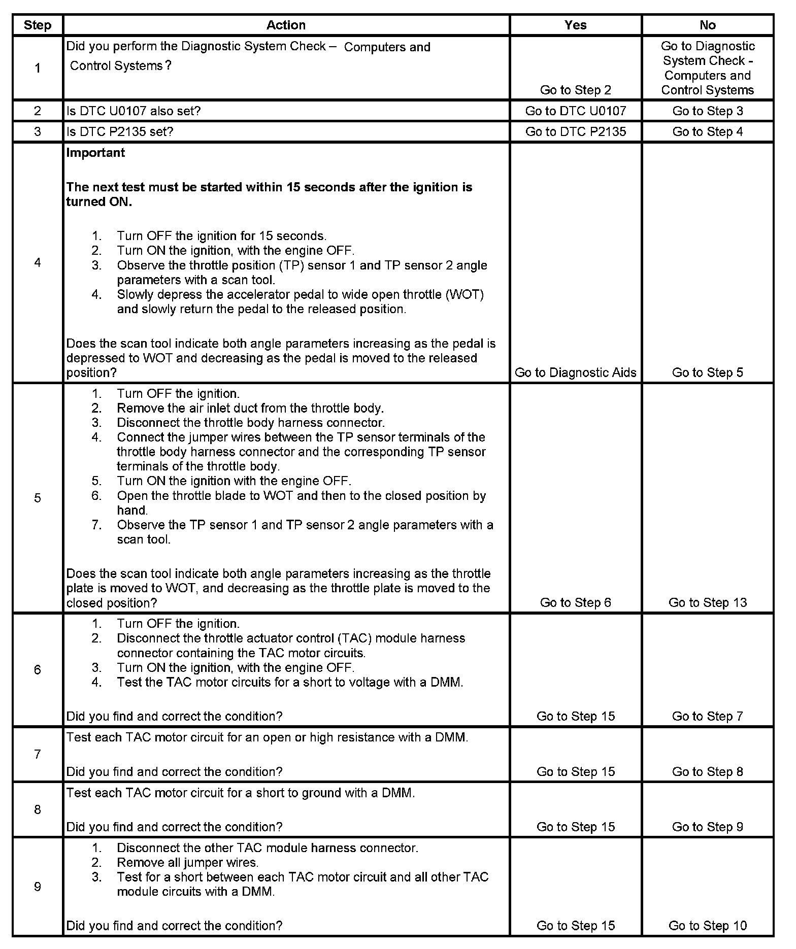 5. If the TP indicated angle does not follow the movement of the throttle blade, and no TP sensor DTCs are set, there is a mechanical condition with the throttle shaft or the TP sensor.