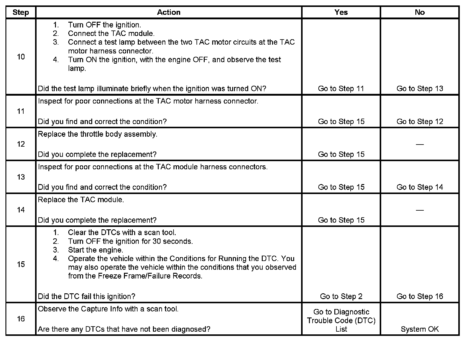 - When the TAC module detects a condition within the TAC system, more than one TAC system related DTC may set. This is due to the many redundant tests run continuously on this system. Locating and repairing an individual condition may correct more than one DTC. Disconnecting components during testing may set additional DTCs. Remember this if you review the stored information in Capture Info.