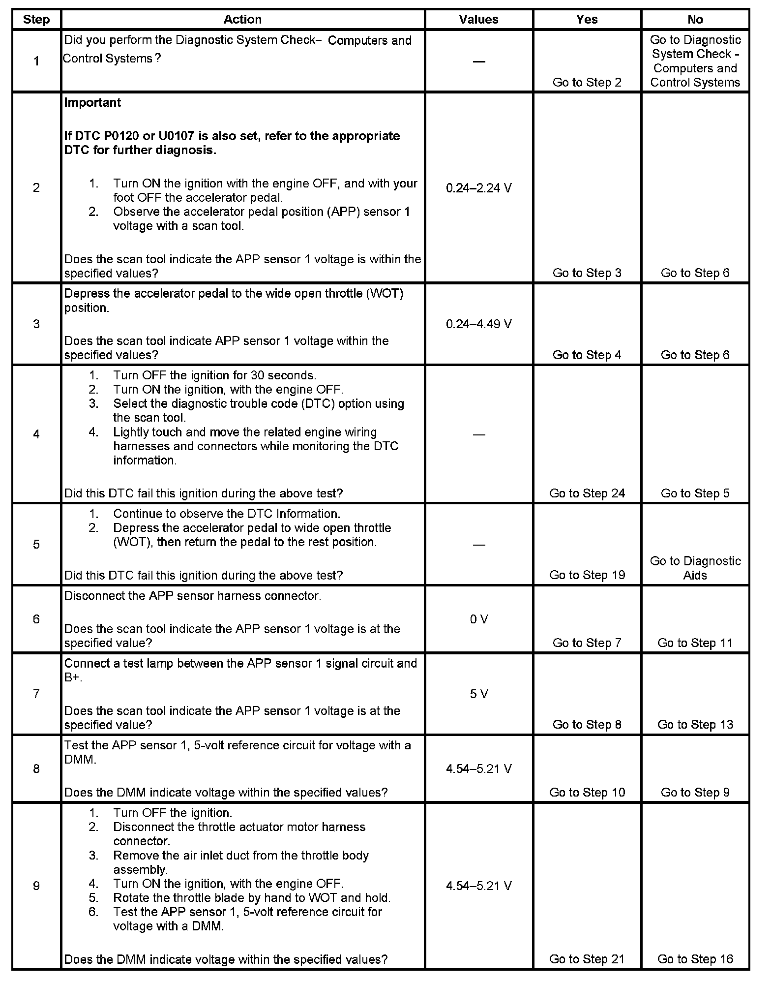 - The APP sensor 1 voltage is less than 0.24 volts or more than 4.49 volts.