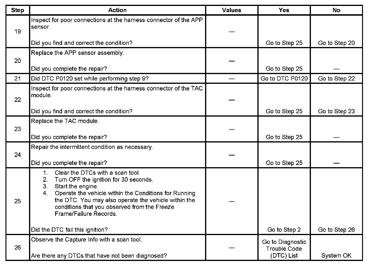 26. When the TAC module detects a condition within the TAC system, more than 1 TAC system related DTC may set. This is due to the many redundant tests run continuously on this system. Locating and repairing 1 individual condition may correct more than 1 DTC. Disconnecting components during testing may set additional DTCs. Remember this if you review the stored information in Capture Info.