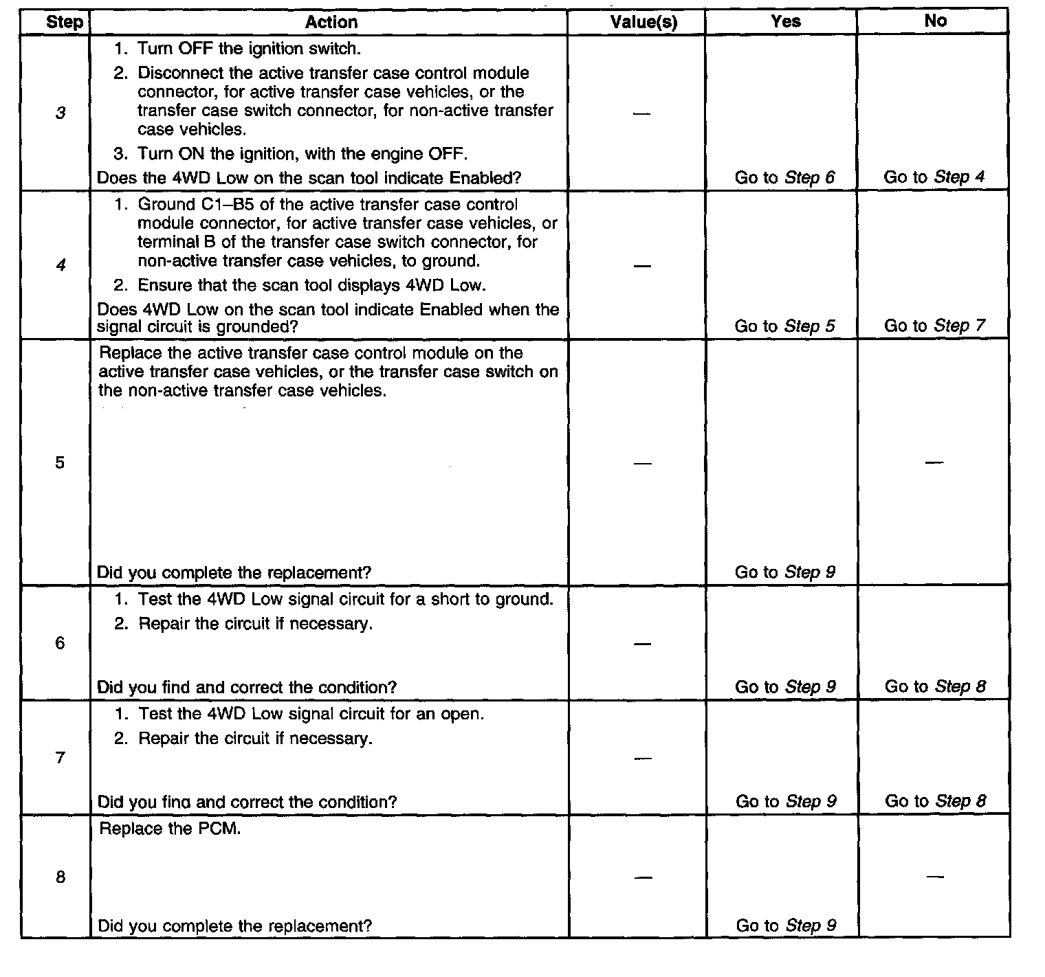 4. This step tests for an open in the signal circuit. a faulty transfer case control module, active transfer case vehicles, or transfer case switch, non-active transfer case vehicles.