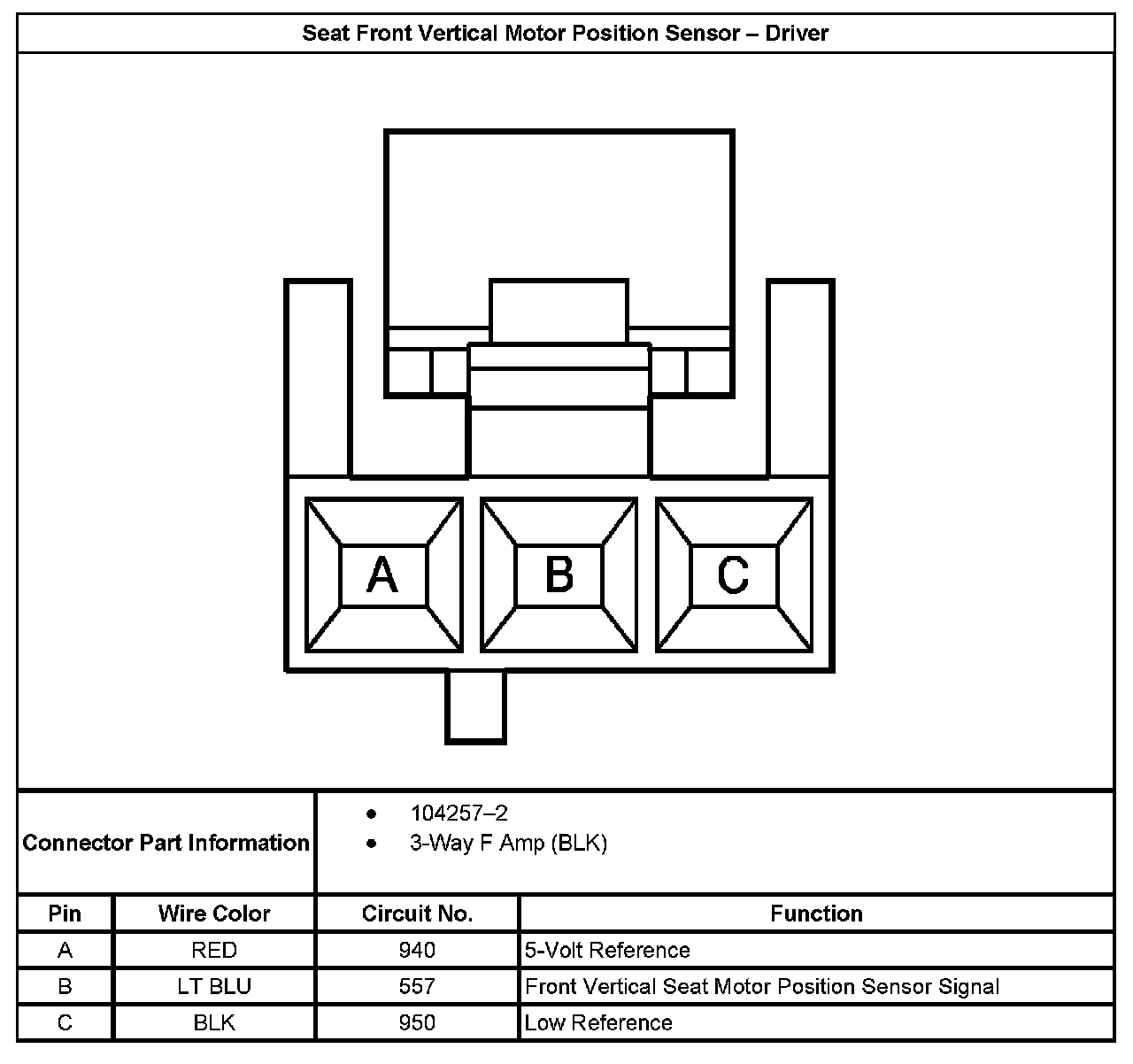 Seat Front Vertical Motor Position Sensor - Driver: