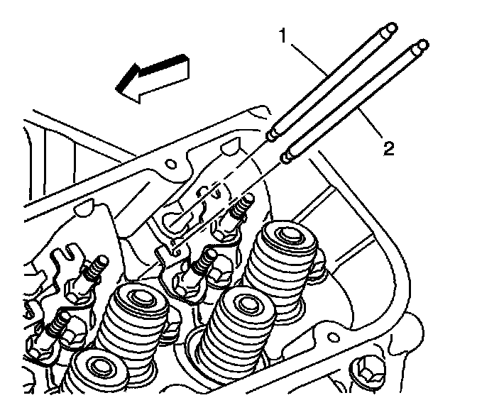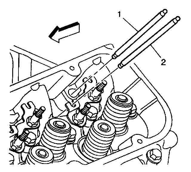 Important: The exhaust valve pushrods (2) are longer than the intake valve pushrods (1).