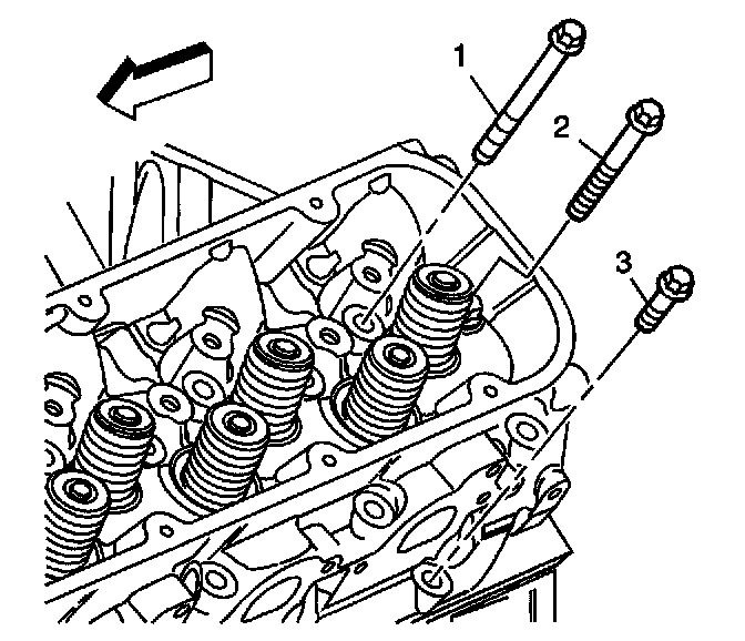 4. Install the cylinder head bolts (1, 2, and 3).