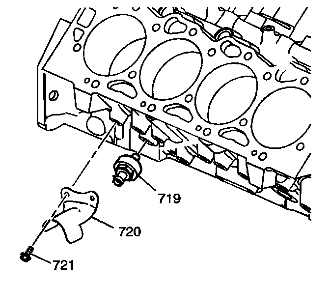 6. Remove the right side knock sensor heat shield (720) and bolts (721).