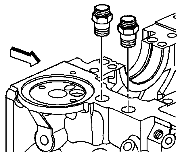 8. Remove the engine block oil cooler hose fittings.
