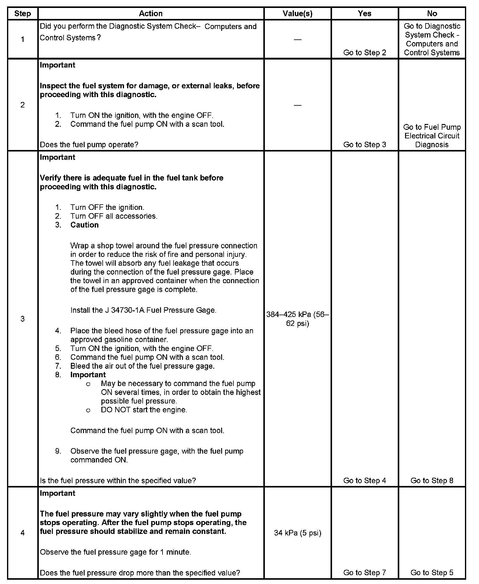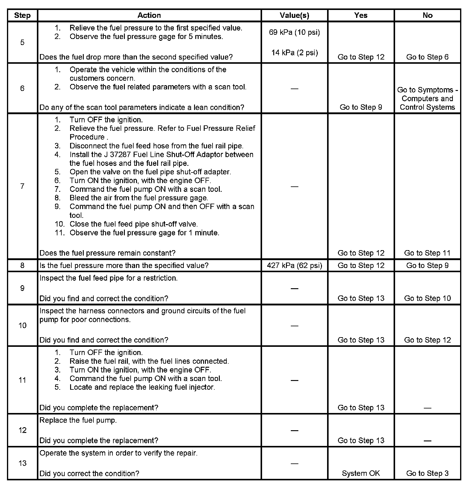 10. This step verifies that a circuit condition is not the cause of a fuel pressure concern. Inspect all fuel pump electrical circuits thoroughly.