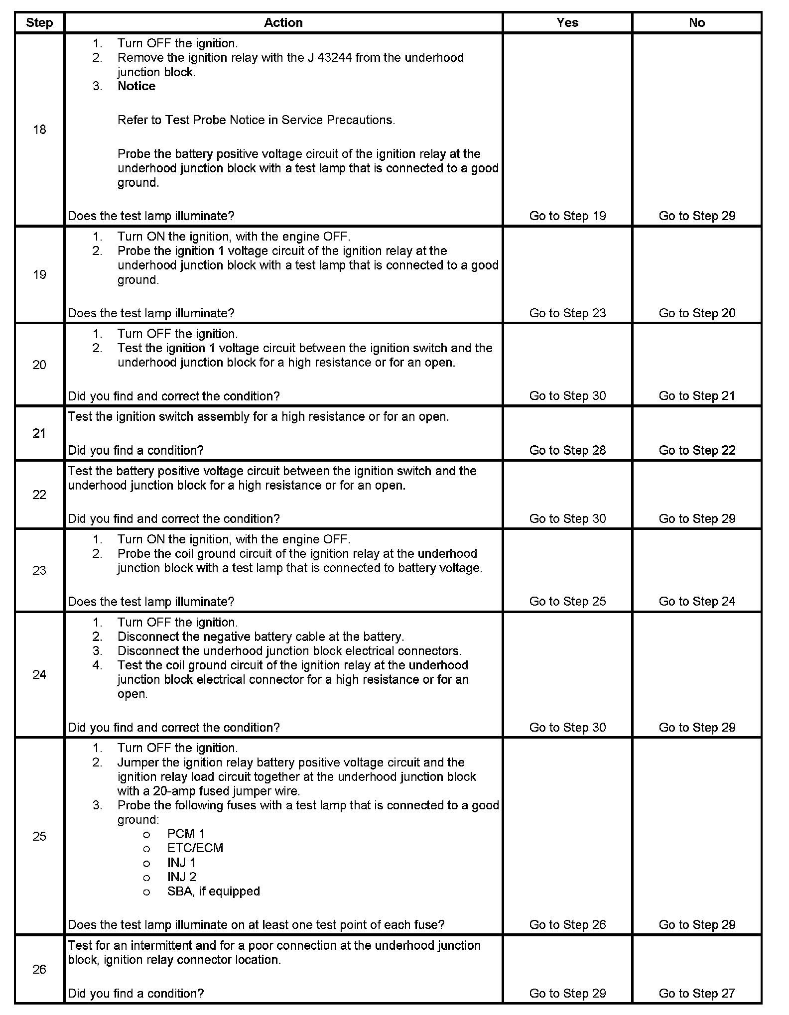 The ignition relay table assumes that the vehicle battery is fully charged. Refer to Battery Inspection/Test (Non-HP2) in Starting and Charging.