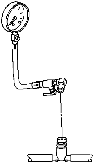 6. Connect the J 34730-1A to the fuel pressure valve. Wrap a shop towel around the fitting while connecting the gage in order to avoid spillage.