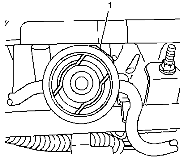 11. Push down on the fuel dampener and remove the fuel pressure dampener retainer (1). Discard old dampener retainer.