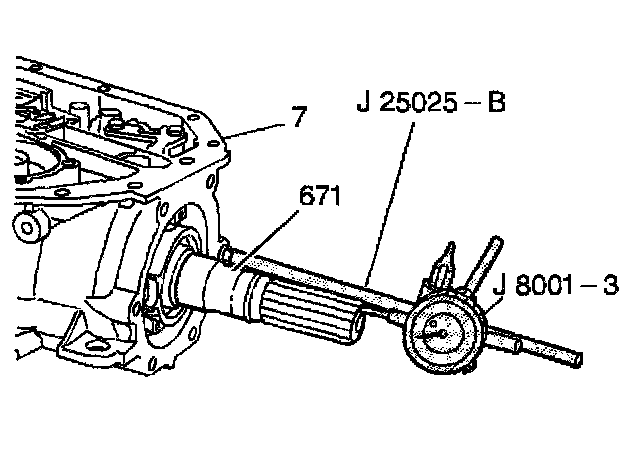 3. Assemble the J 8001-3 onto the dial indicator holder. Index the J 8001-3 to the end of the output shaft (671).
