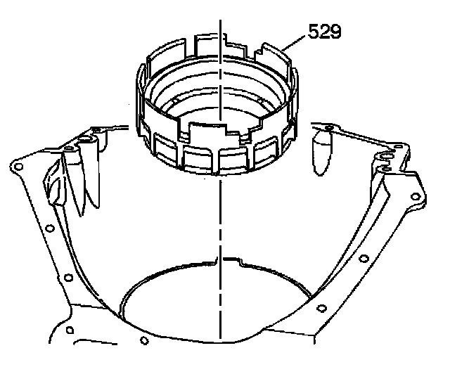 4. Install the fourth clutch housing (529) into the transmission case.