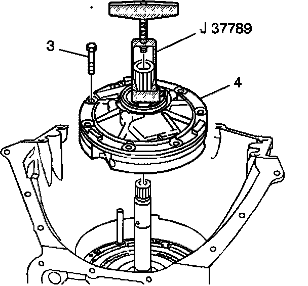 3. Install the J 37789-A onto the transmission oil pump assembly (4).