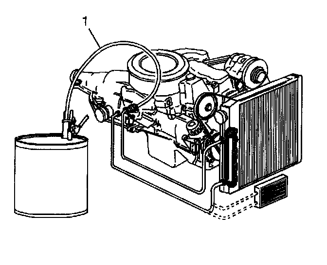 4. Start the engine with the transmission in PARK range and run for 30 seconds after fluid begins to flow from the discharge hose (1). A minimum of 1.9 L (2 qt) must be discharged during this 30 second run time.