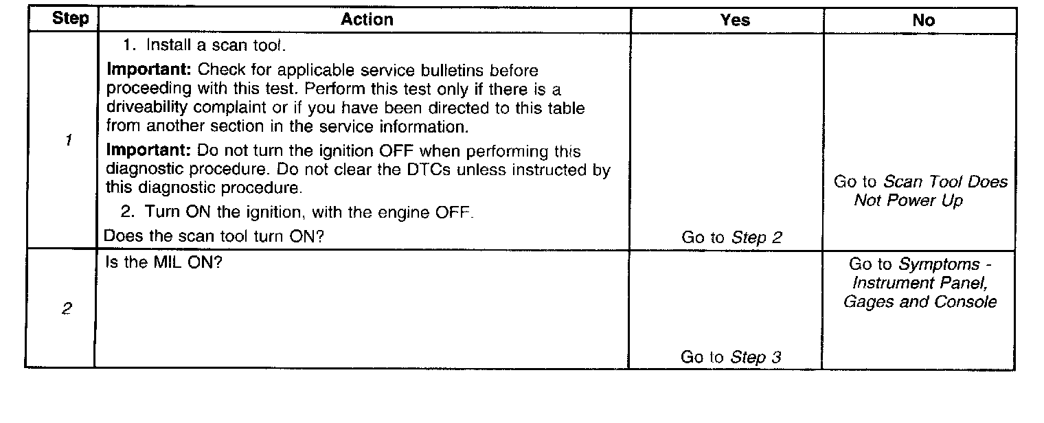 Follow the table to help reduce diagnostic time and help prevent unnecessary replacement of good parts.