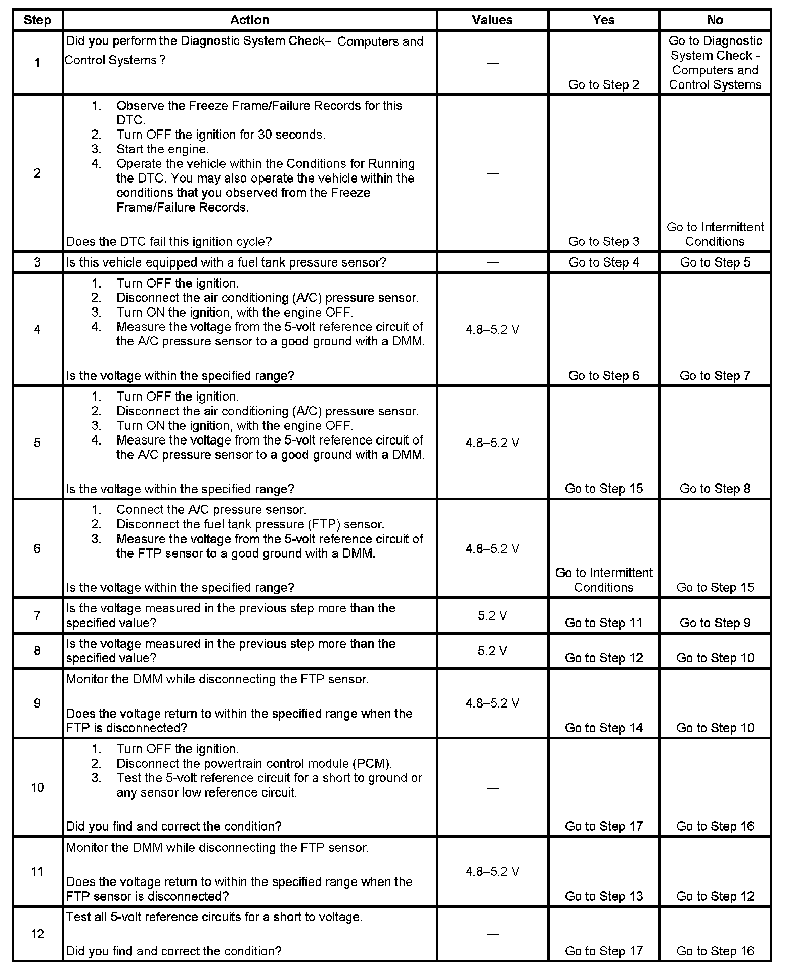 - The PCM detects a voltage out of tolerance condition on the 5-volt reference circuit.