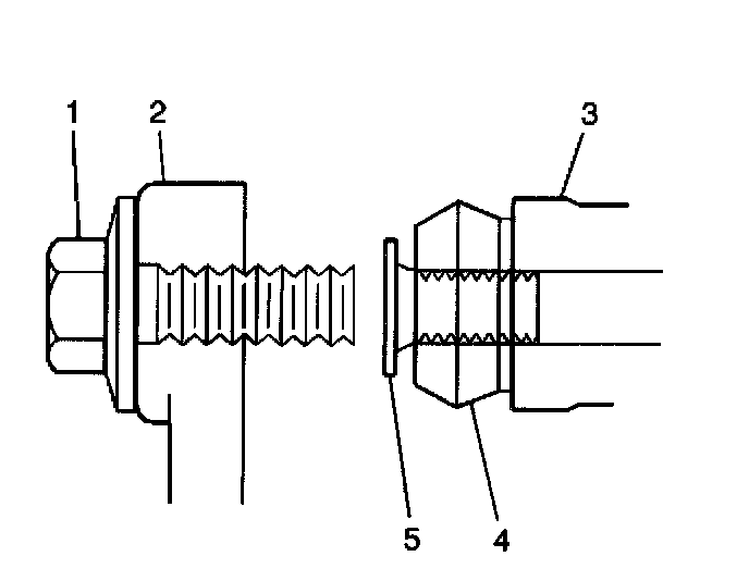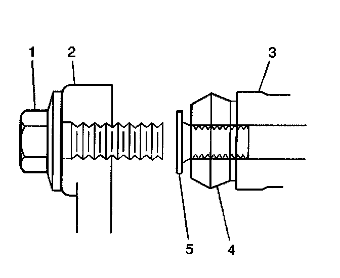3. Install the caliper pins (5) to the disc brake caliper mounting bracket (3).