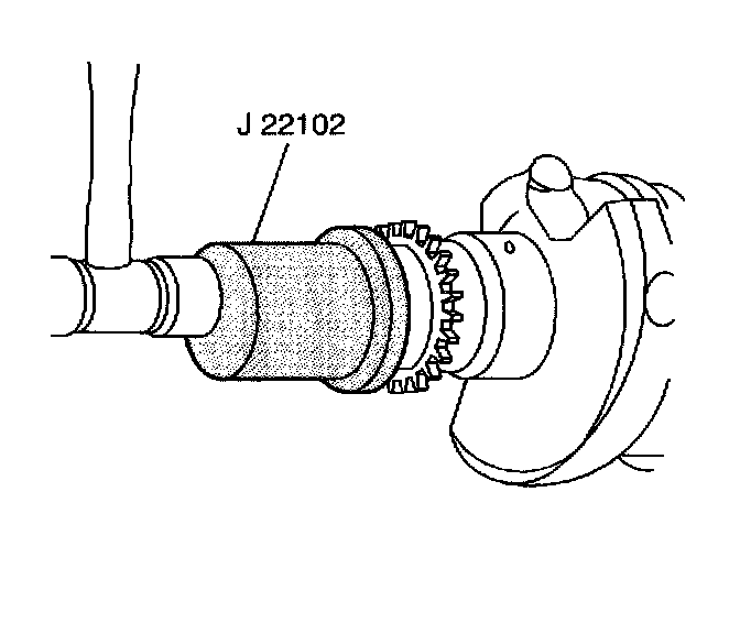 1. Use the J22102 in order to install the crankshaft sprocket. Align the keyway of the crankshaft sprocket with the crankshaft pin.