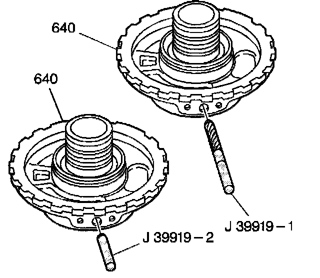 ^ If the center support has been previously reconditioned, or if the J 39919-2 fits into the bolt hole, you MUST replace the center support and bolt in order to avoid component damage.