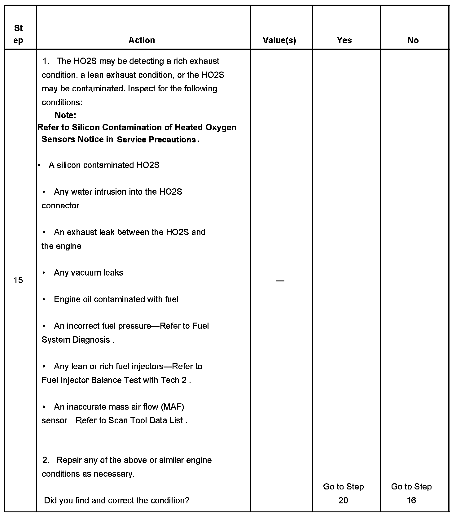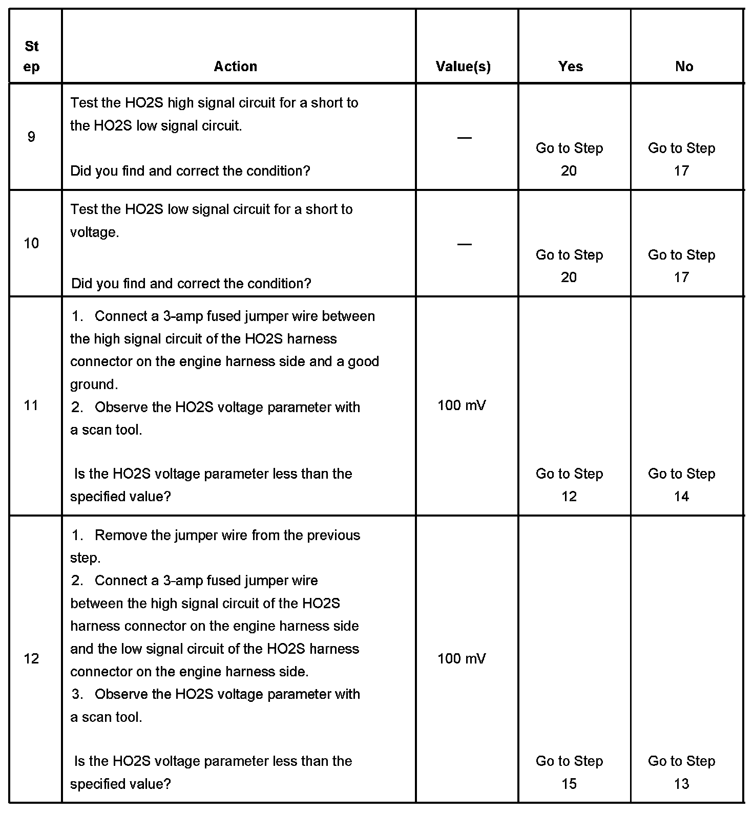 - The HO2S bank 1 sensor 1 and HO2S bank 2 sensor 1 is more than 600 mV.
