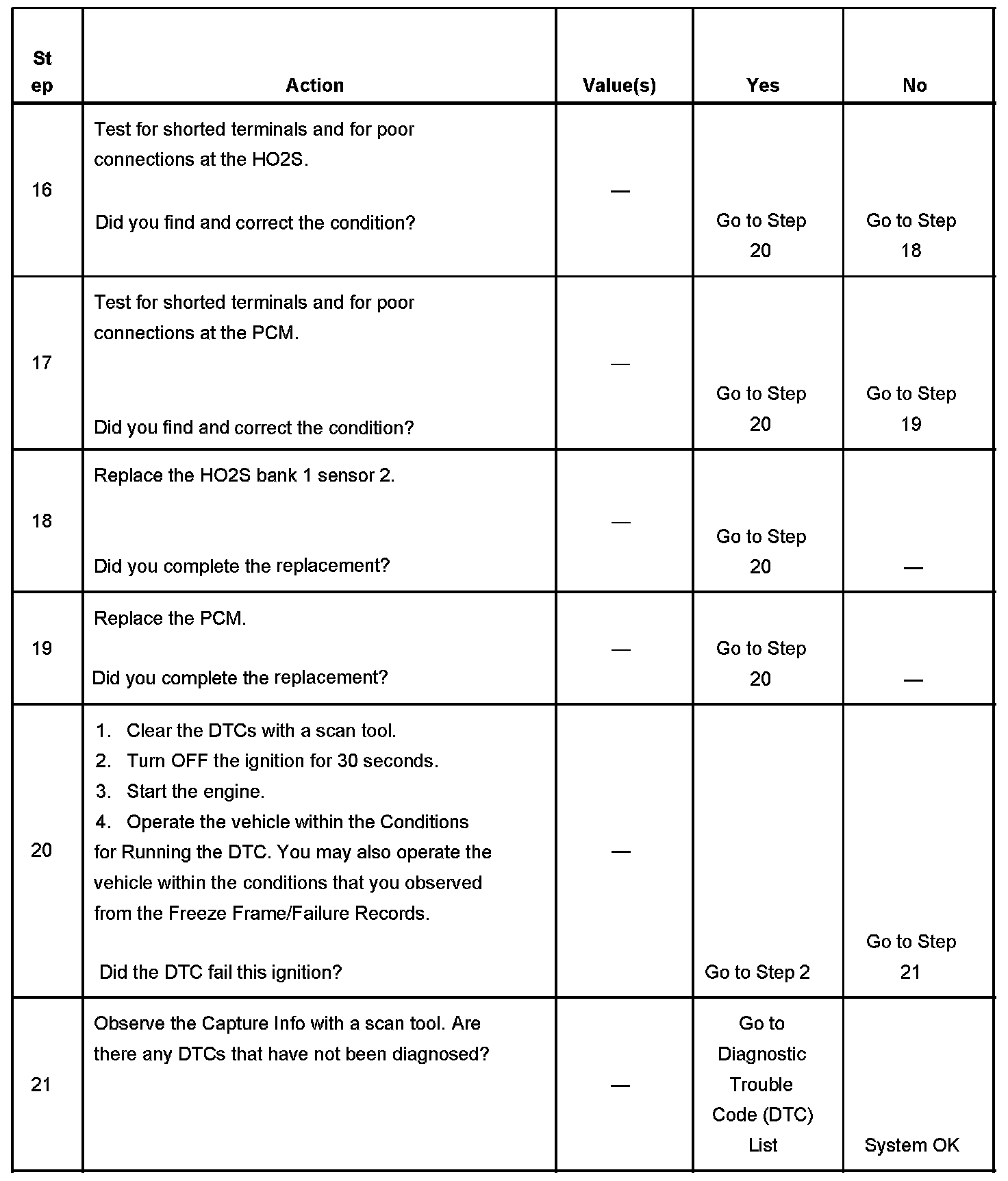 - A current DTC, Last Test Failed, clears when the diagnostic runs and passes.