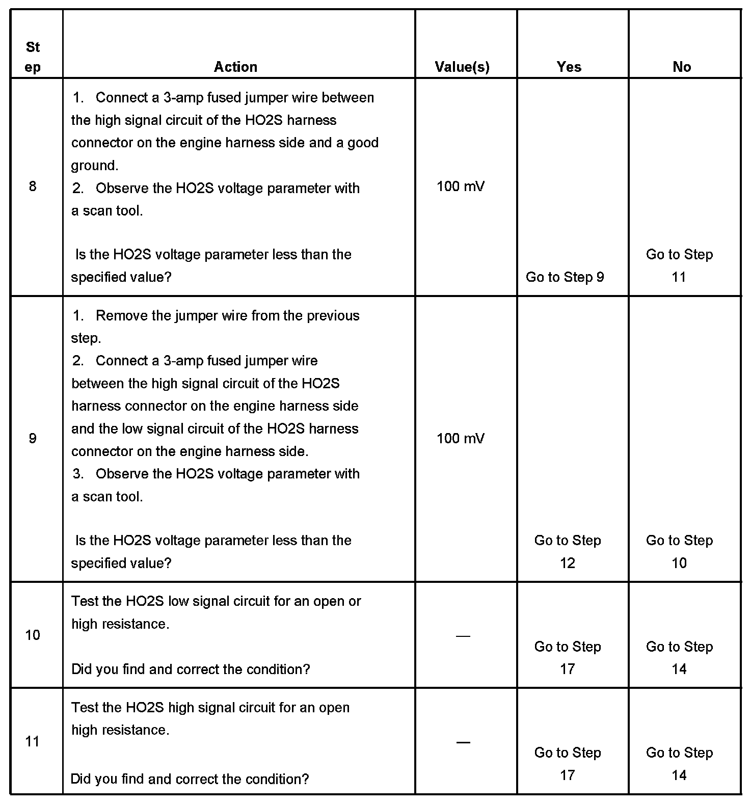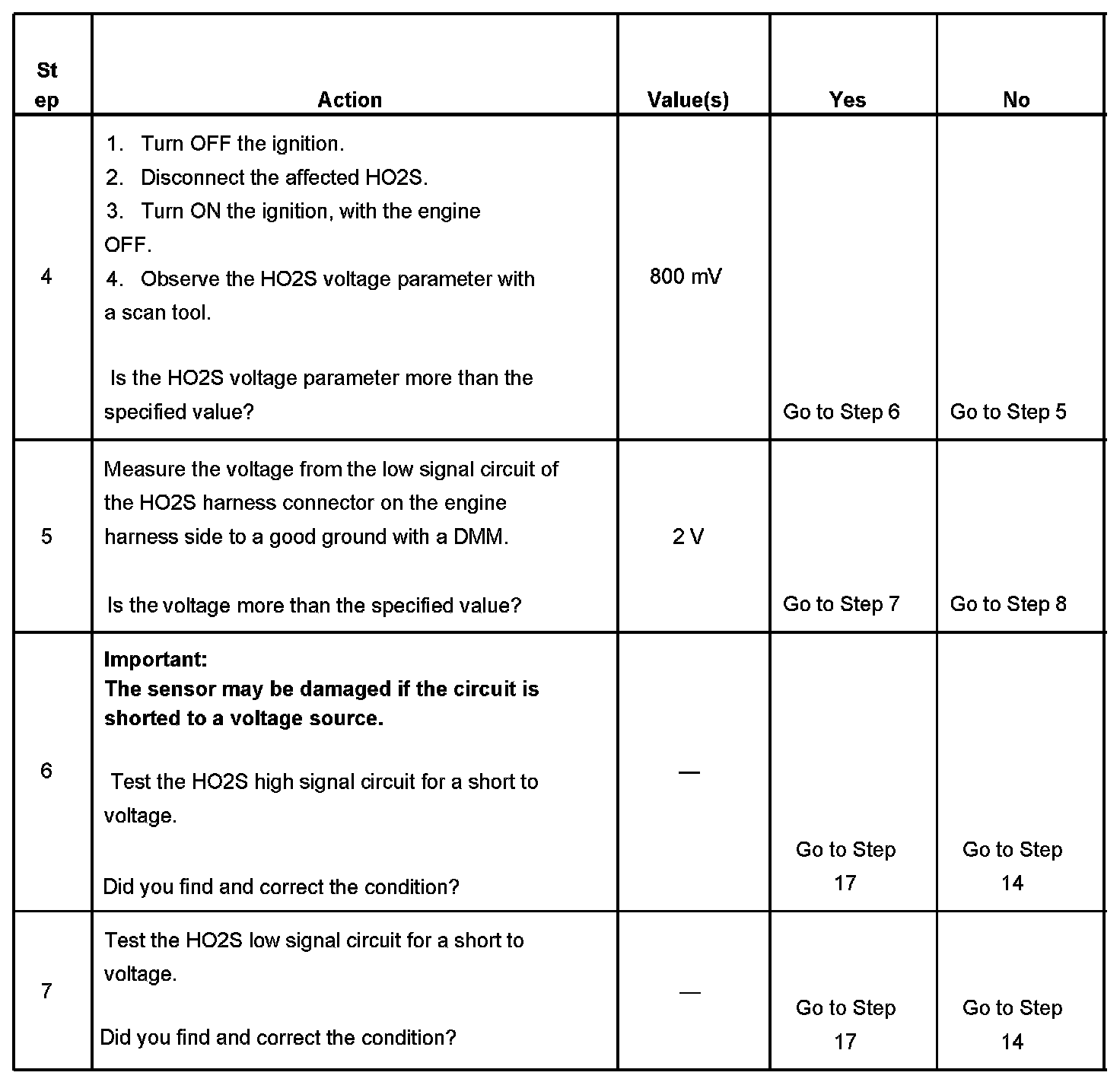 2. If the voltage does not change more that the specified value, the condition is present.