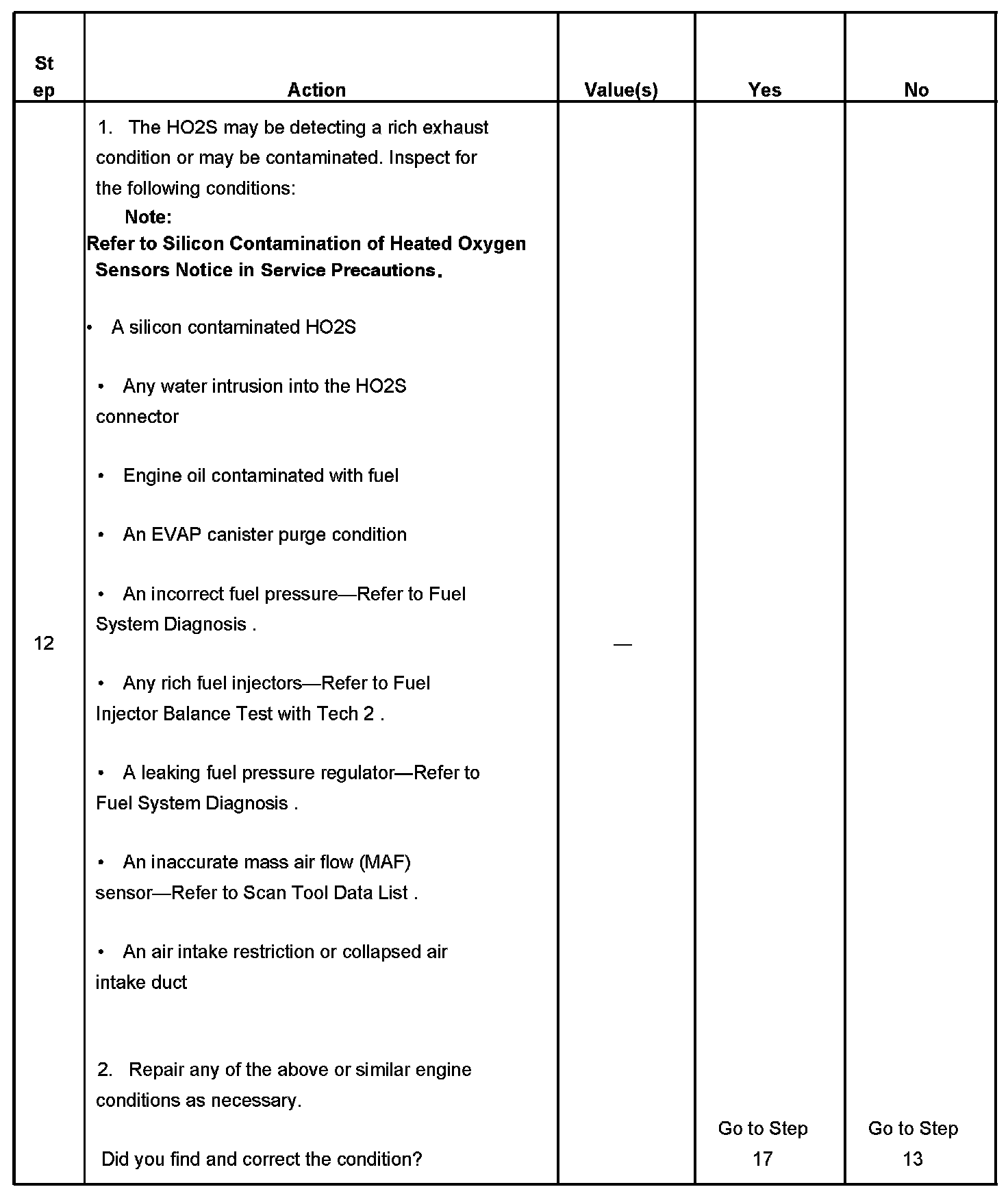 The number below refers to the step number on the diagnostic table.