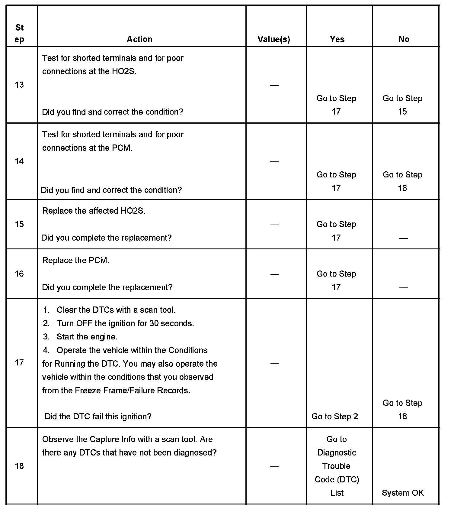 - A current DTC, Last Test Failed, clears when the diagnostic runs and passes.
