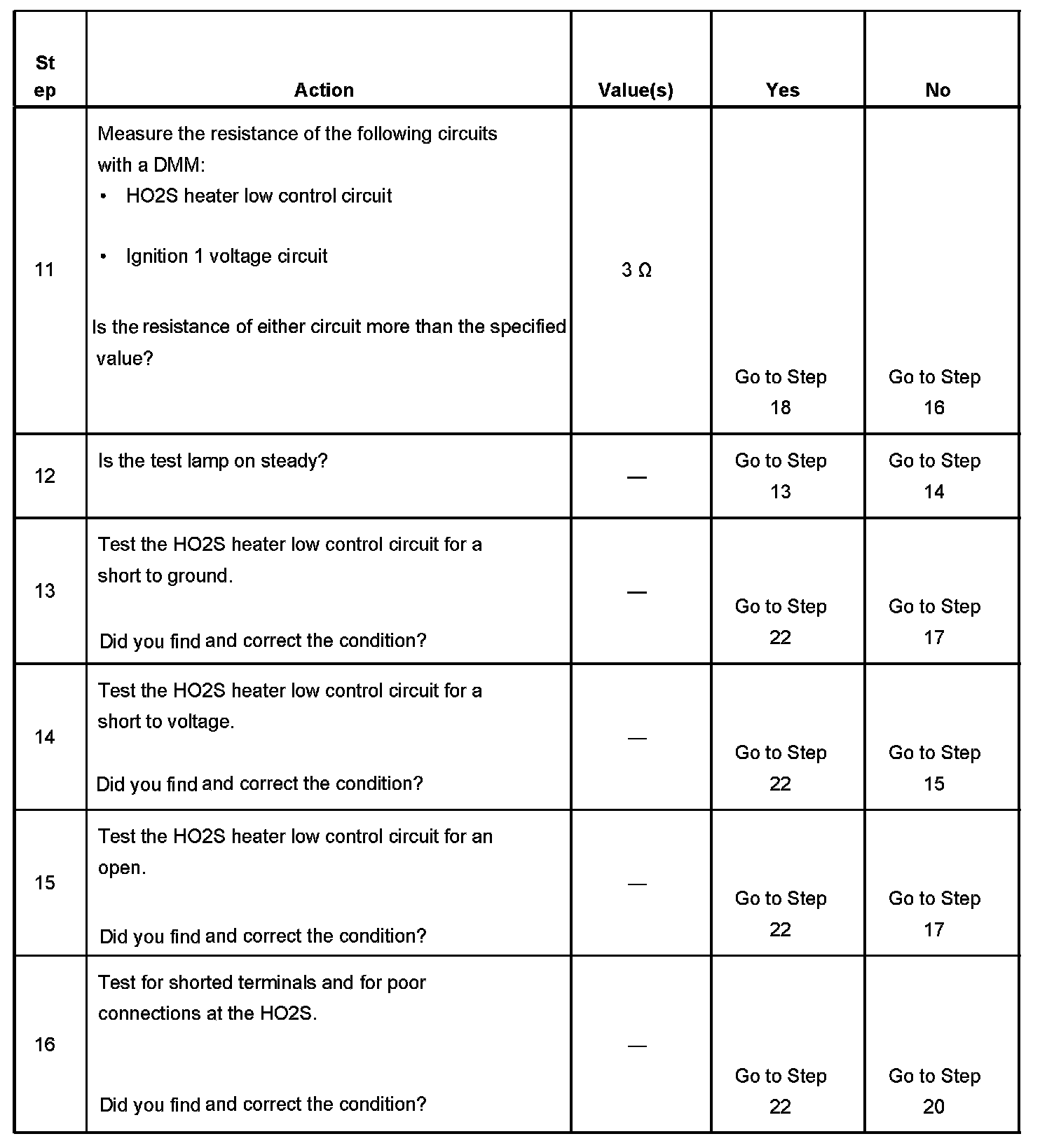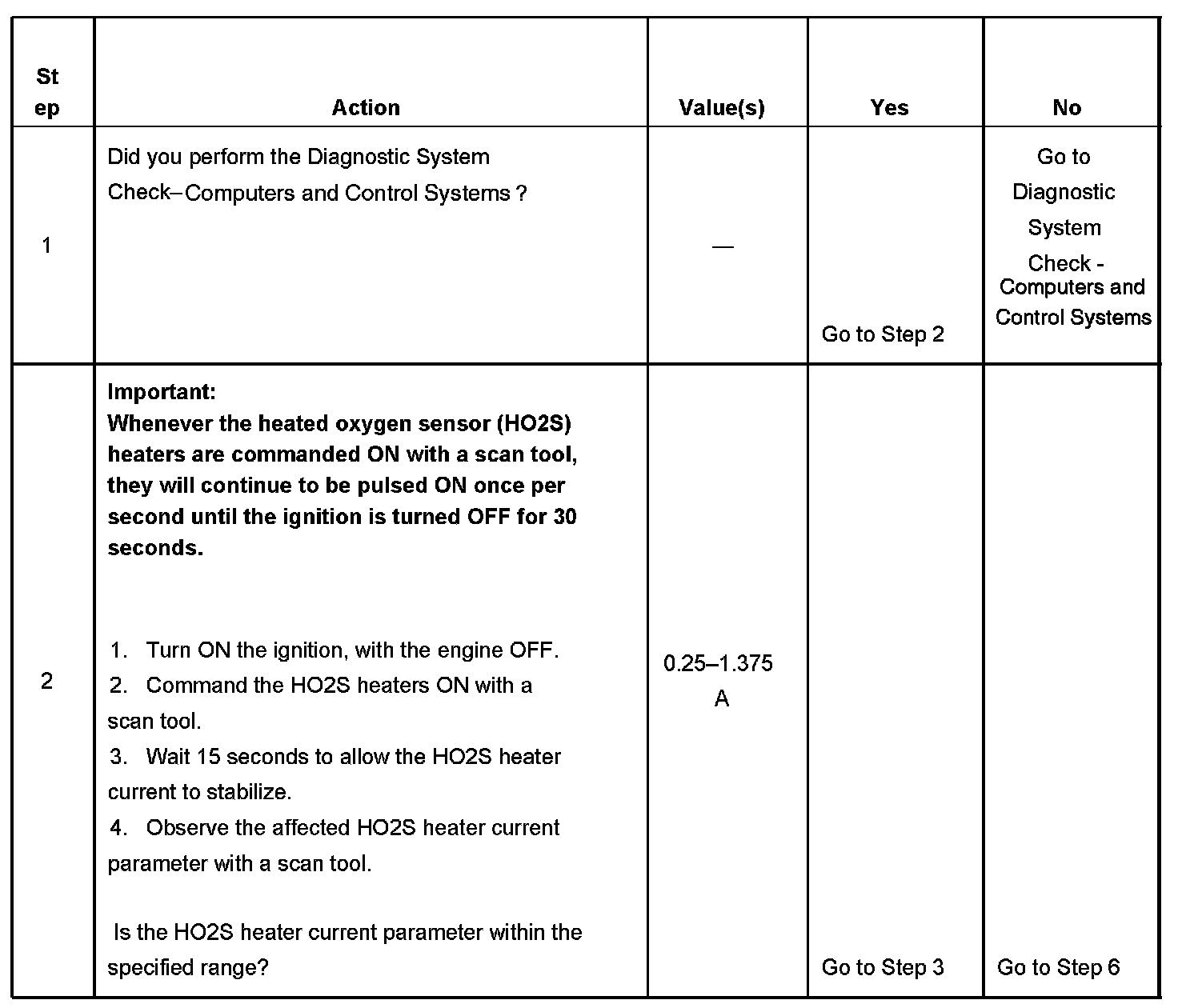 - The PCM detects that the affected HO2S Heater Current parameter is more than 1.375 amps or less than 0.25 amps.
