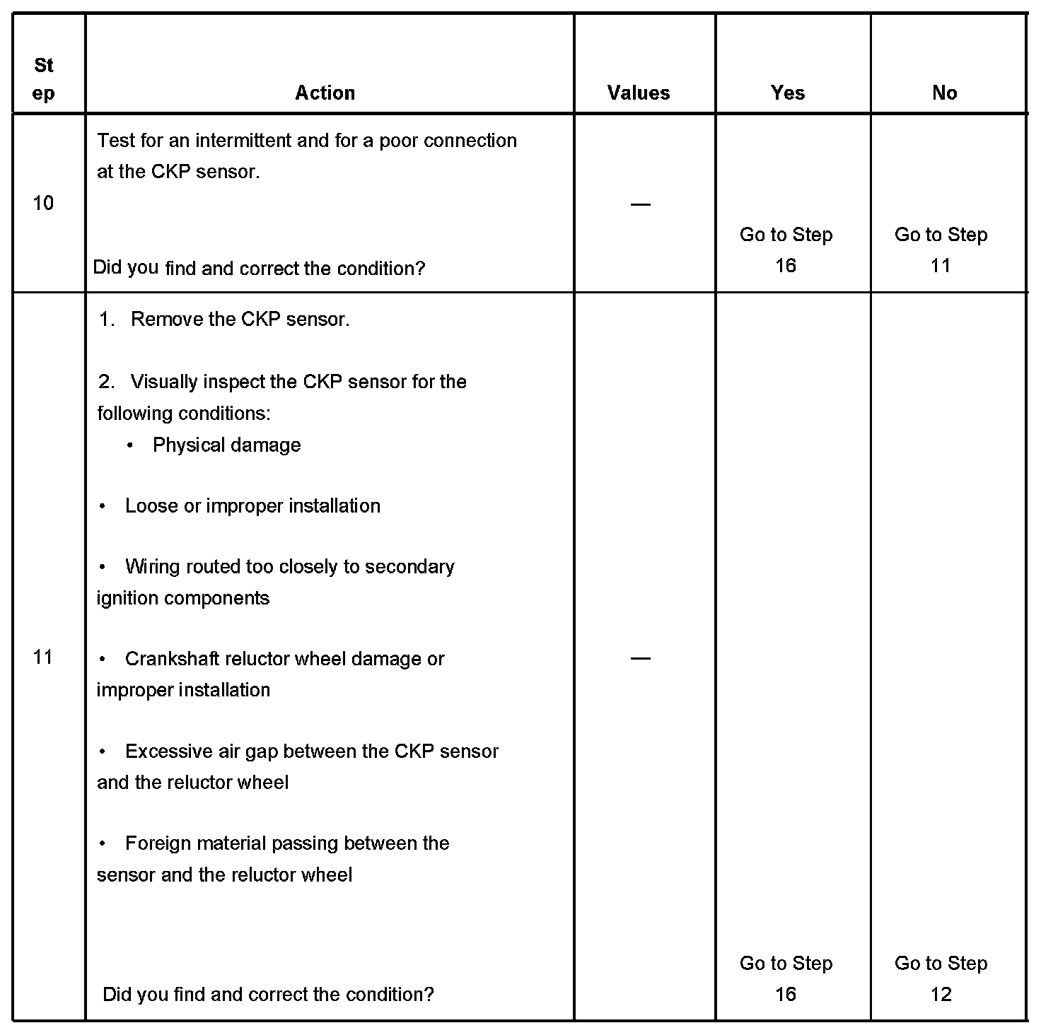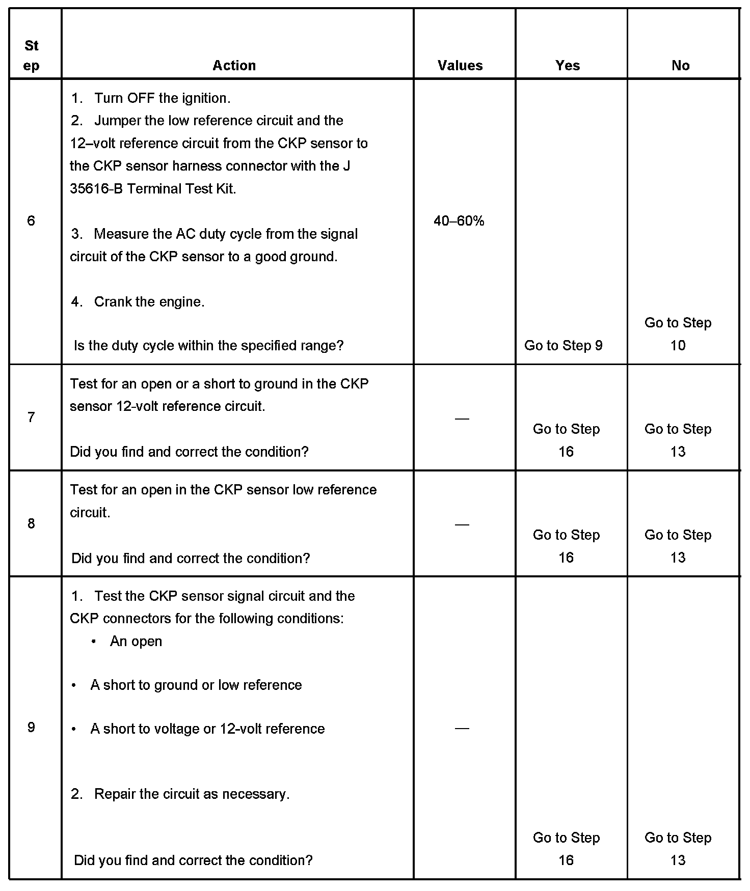 - The CKP sensor 1 signal circuit