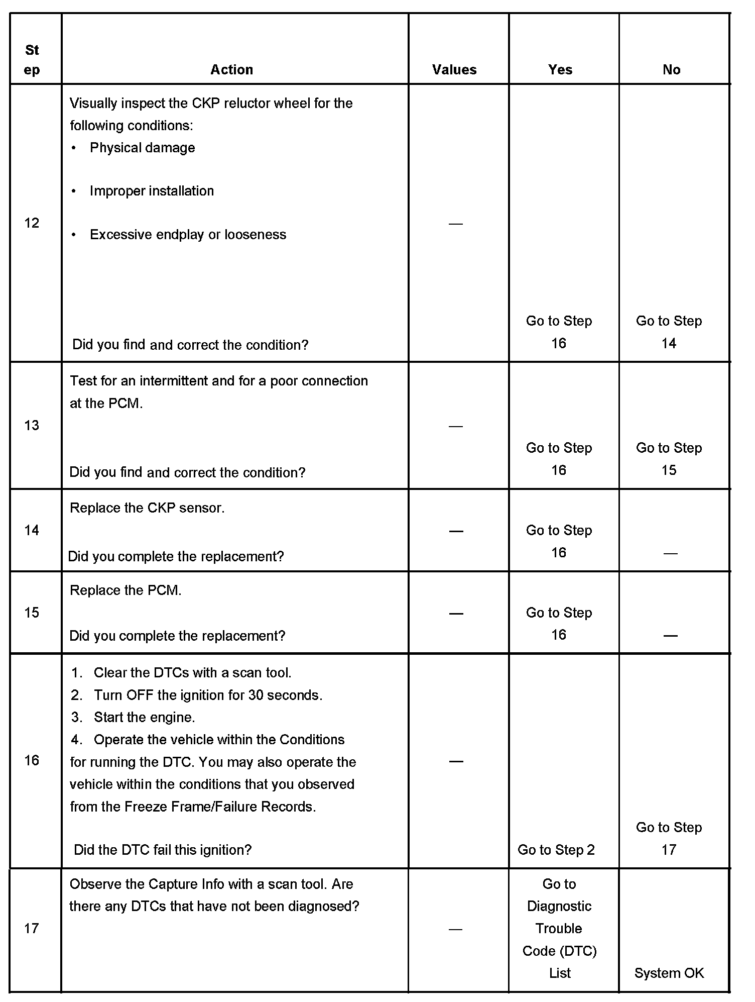The PCM detects no signal from the CKP sensor for more than 3 seconds.