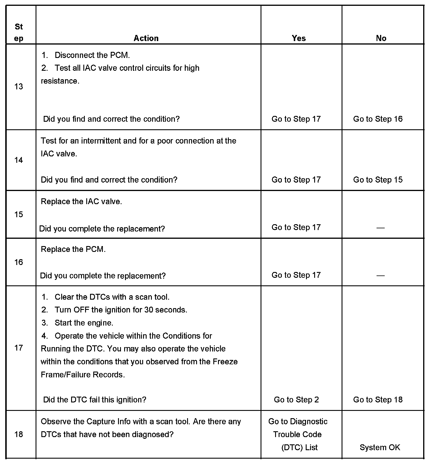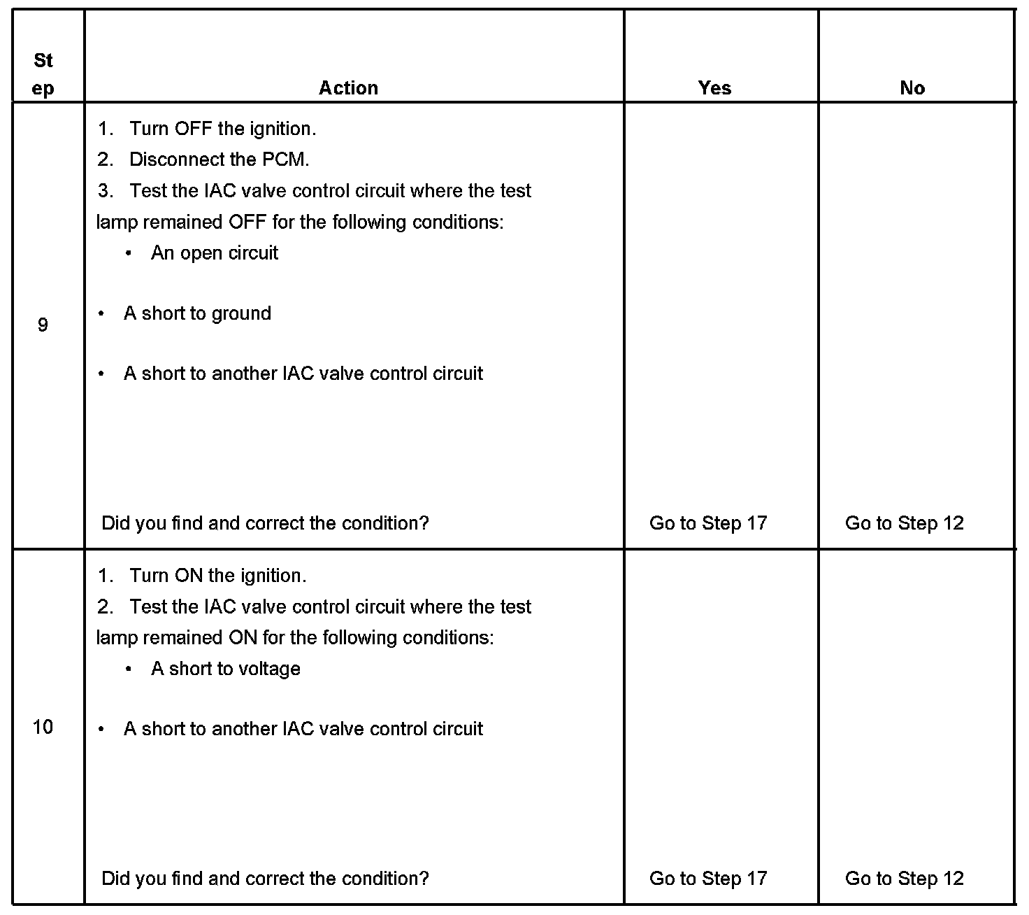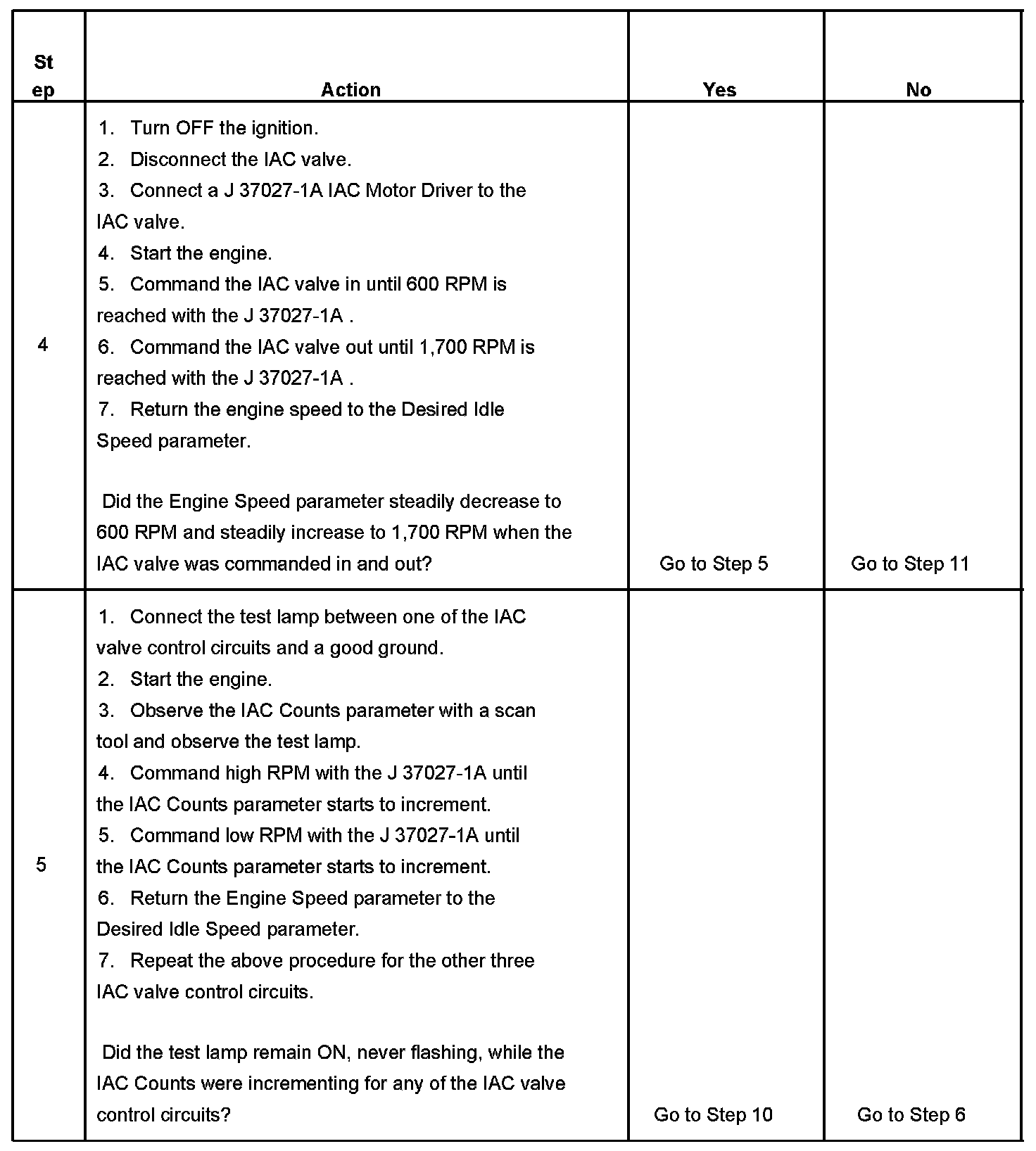 5. This test will determine the ability of the PCM and IAC valve control circuits to control the IAC valve.