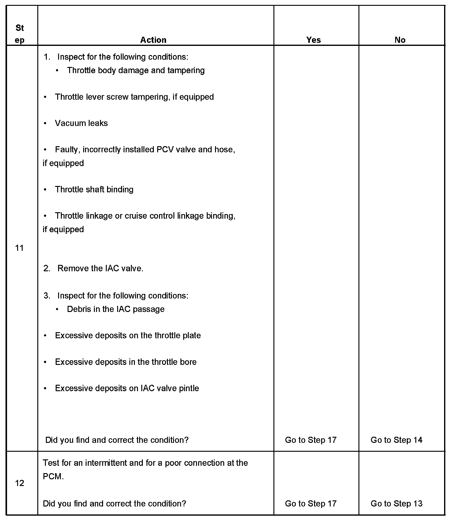 - Excessive deposits in the throttle bore or on the throttle plate