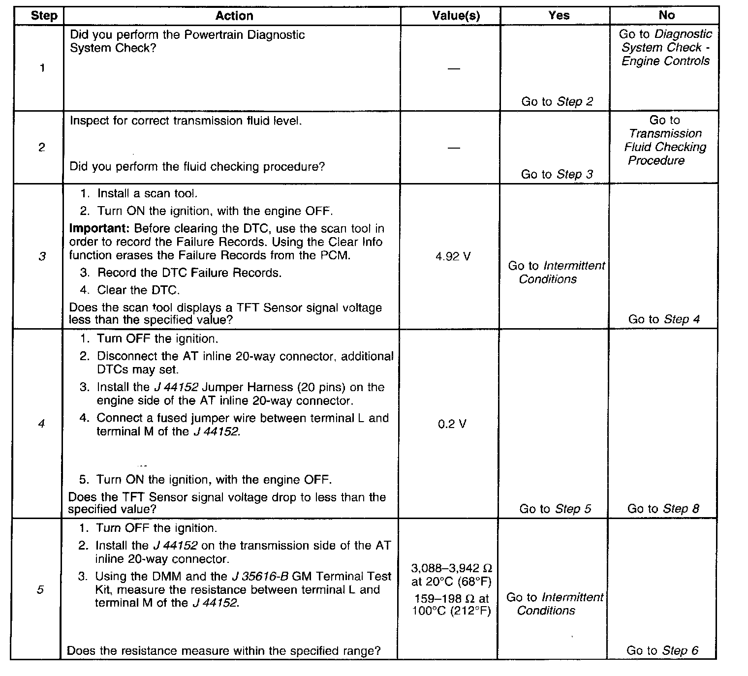 5. This step tests the TFT sensor and Automatic Transmission (AT) wiring harness assembly.