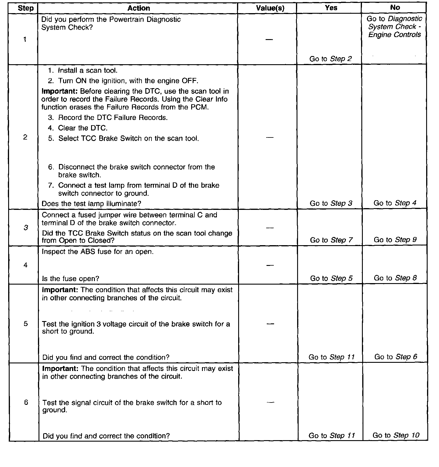 ^ The PCM disregards the brake switch input for TCC scheduling.