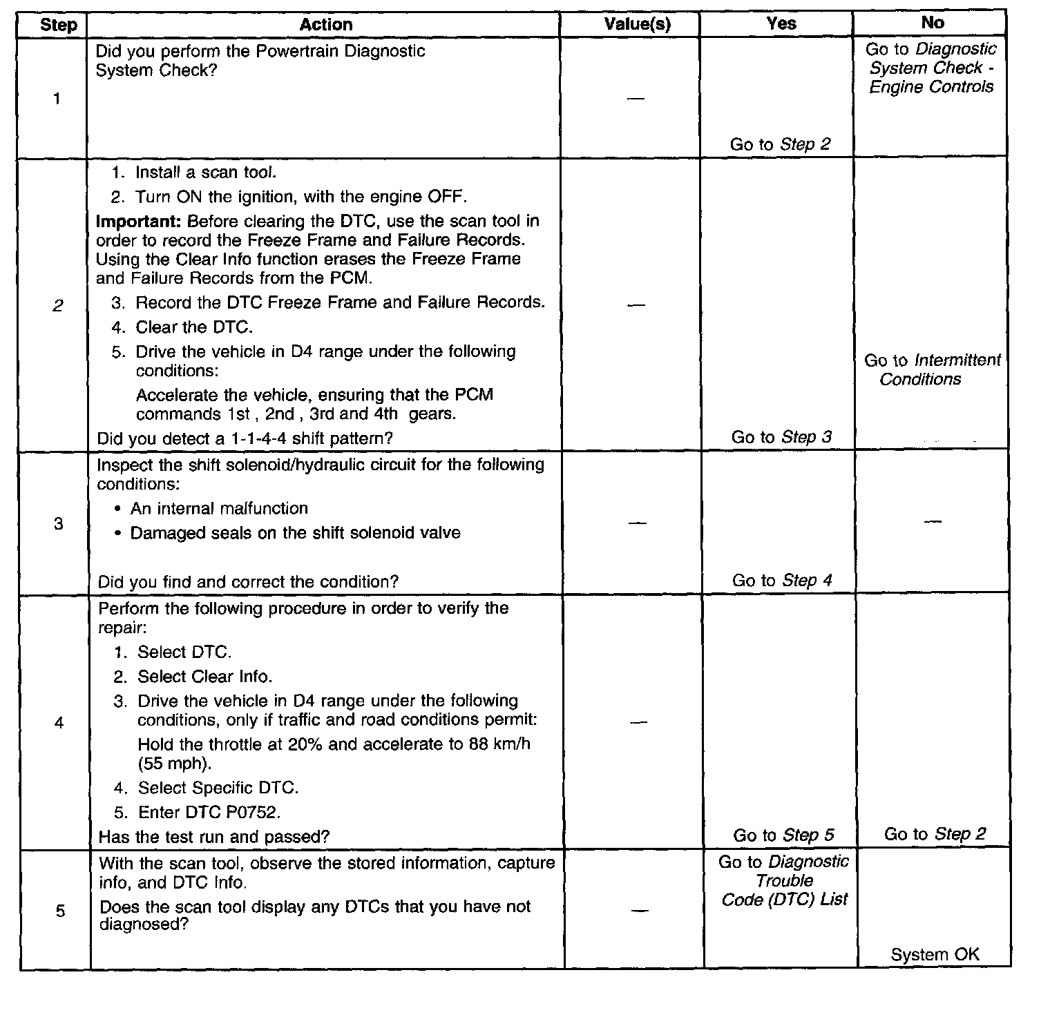 ^ The PCM stores DTC P0752 in PCM history.